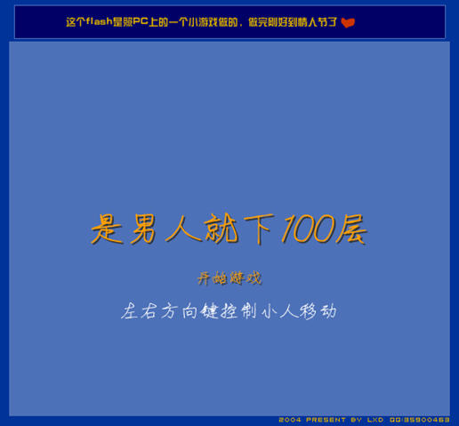 游戏说明:类似男人下100层游戏,唯一的区别是一直往下不会摔死。你存活的时间越长获得的分数也就越多,是男人的就来
