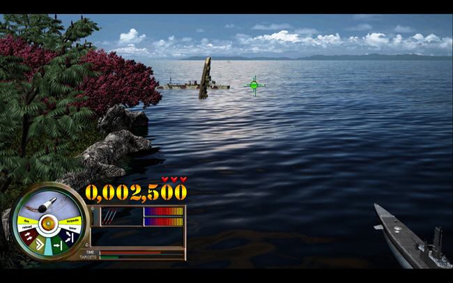 游戏以珍珠港战争为背景的STG射击游戏,采取鼠标控制射击使之敌军舰艇沉没,精准度和时间将是你唯一的盟友,你将在珍珠港附近的危险海域巡逻
