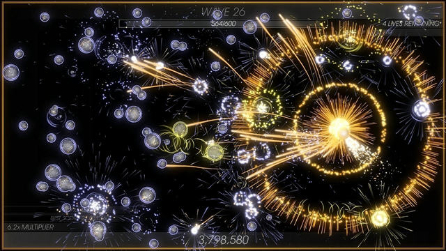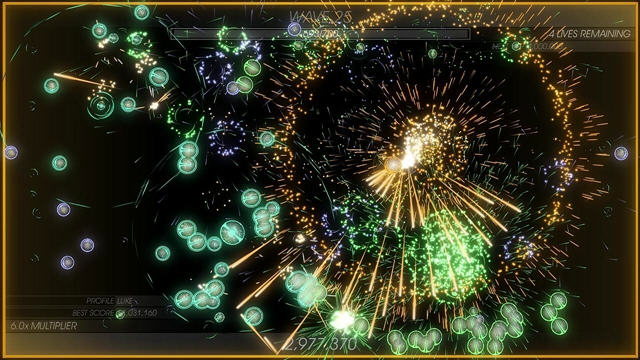 Radiangames发行的又一款飞行射击游戏,靓丽的画面必不可少。不过这次的游戏方式有点不一样,你被固定在一个位置,四面八方都会有东西铺面而来,全力射击不要让它们靠近你,坚持到最后,你就是胜利者。