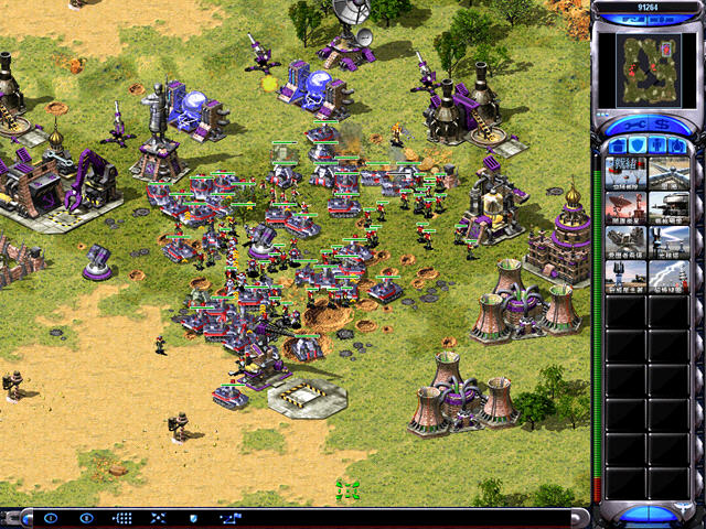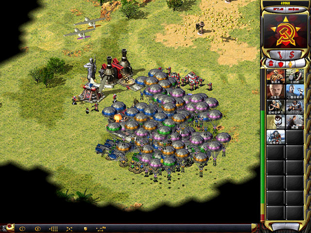 这个版本是个非常变态的版本,造兵几乎不需要钱,而且建筑建造速度奇快,对于手速慢的玩家可能你刚兵营造出来你就已经被灭掉了。个人建议不要急着先下矿,直接暴兵先守家,有了间谍卫星后知道电脑家里动向就会变得相当好打。