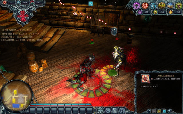 游戏中你是地下城的主人,控制着地下城的一切建设但不能直接控制你手下的怪物和陷阱。你可以通过挖掘洞穴和建设怪物巢穴把地下城建设成一个相当危险的地方。随着你灵魂本质的上升你可以给你的地下城设置更多种类的装饰物,如书架,灯座,桌椅,尸体等,安放更多的战利品,招募更多种类的怪物。游戏里共有三种材质的墙面,分别为石块,砖块和地狱里的硫磺石,每一种都有不同的装饰物,可以让你的地下城呈现不同的风格。
