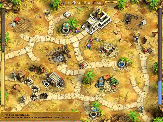 重新建立起被沙尘暴所破坏的埃及建筑物,神庙,雕像,这些都将会是你努力的目的。同时也要小心那些危险的存在,黑暗之神与阿努比斯会竭力阻止你的行径。招募你的勇士吧,不仅仅是为了能够平定那些盗匪,同时也能够让你辛苦建立起来的国家稳定的发展下去。古老埃及的繁荣将会掌握在你的手中。