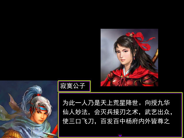 热心玩家自己制作的吞食天地系列,对于杨家将不熟悉的玩家也不要紧,游戏的一开始会为你一一介绍杨家将的成员以及大概的历史背景,游戏将围绕杨家将来讲述杨家精忠报国的历史。