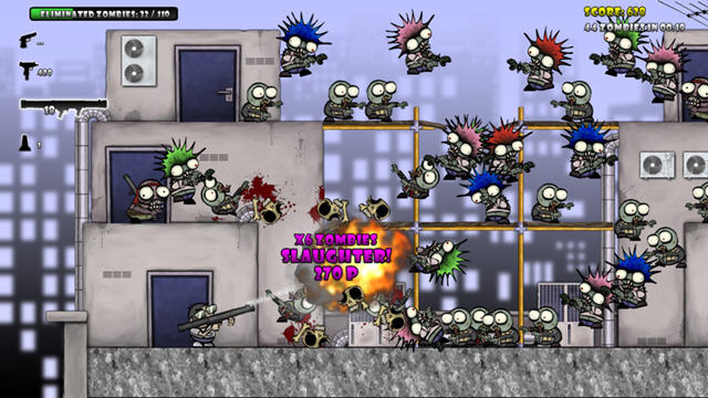 游戏中你可以使用种类繁多的武器,手榴弹,路障,机枪,凡是一切能够抵抗僵尸,保卫你自己的东西,你都可以尽情的使用,你的目的很简单,保卫你自己……的脑子。