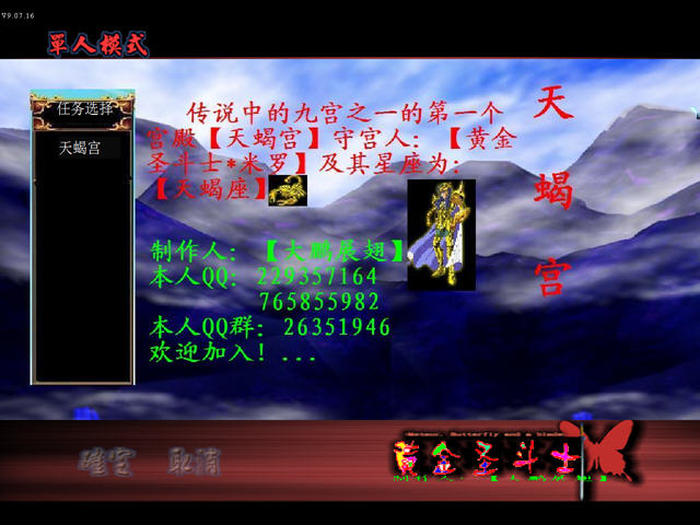 本任务不带什么很复杂和很有结合力的剧情!本任务的剧情是一关一个剧情。共九关总共九个剧情。每关任务都很精彩!这是根据《黄金圣斗士》九宫的电视剧而编的。