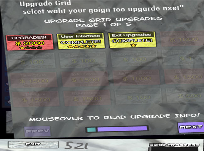这是一款披着射击游戏皮的恶搞型小游戏,游戏一开始作者会先恶搞一翻,最后会给玩家一点金钱,以及几乎空白的画面,这不是当机哦,先不要急着关掉。因为所有的东西都必须靠玩家升级来拿到,包括标题、框架、音效、背景、按钮等等。玩家可以先找到upgrade的按钮,点进去先升级一些基本的东西后,慢慢的就会操作。