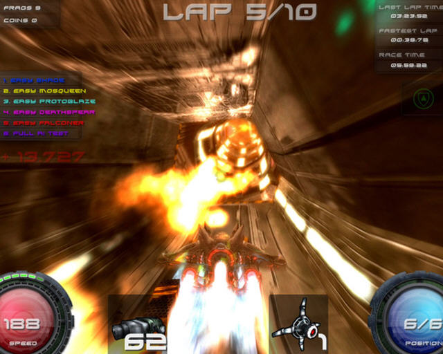 烽火飞车(Pyroblazer)是由Eipix Entertainment公司开发的幻想派新作。在《烽火飞车》中,玩家将有机会驾驶名为“烽火飞车(Blazer)”的反重力赛车,在名为“New Apeiron”的异度空间中飞驰。为了获得让人神往的荣誉,玩家们将在Gnosis的“废墟之谷”、Haedra破败不堪的城市废墟以及人迹罕至的“Underdome of Evelads”展开一轮轮 殊死拼杀。随着游戏流程的不断深入,玩家的坐骑也将获得行驶速度、操纵性、攻击火力等属性的提升。此外,你还可以在较量中捡拾对手掉落的武器和弹药来升级自己的战车,以强化攻击的能力。《烽火飞车》除了拥有包含“快速竞赛(Quick Race)”和“竞标赛(Championship)”的单人游戏,还为喜爱网络对战的朋友提供了最多 支持六名玩家同场竞技的本地及互联网多人对战内容。
