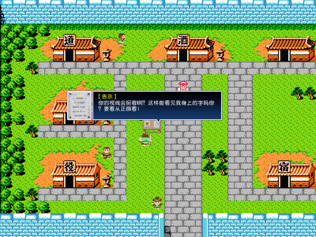 历史的天空第三部——历史的延续,这部作品中我们可以看到更多作者卖萌的地方,诸如他会调戏你一下要不要知道秘籍,至于结果,你自己去探索。当你站在告示牌后边时,它还会“好心”的提醒你,视线是不能拐弯的!