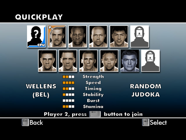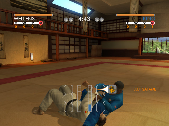 一款很少见的柔道游戏,操作方法类似于舞蹈类游戏,在显示的图标进入方框内时,按下对应键即可。比较不错的是该游戏支持双人模式,没事的时候和朋友来一把吧,要不把那个电脑当成你最讨厌的人来海扁一顿!
