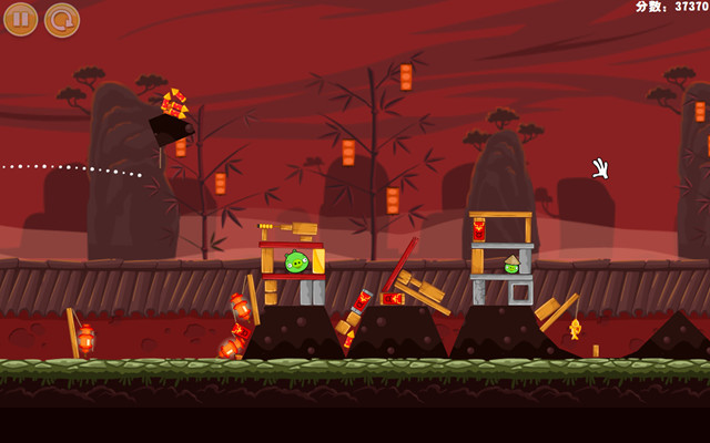 《愤怒的小鸟:2012龙年版》以春节为主题,让玩家感受到新年的新气氛,绿色的猪头们现在也换上了像地主一样地主帽,另外加入的炮仗也成了游戏中另一个需要玩家探索的因素。