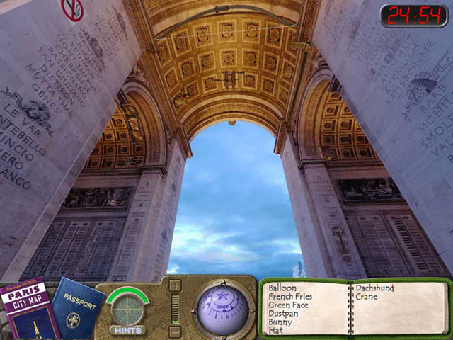 Travelogue 360 Paris是Bigfish Games最新发布的,一款类似于神秘视线的优秀作品。旅行于法国各大城市,穿梭于著名建筑艾菲尔铁塔,凯旋门,和一些时尚的街头店铺间,再次运用你的锐利目光,在360度可旋转的空间中找到指定的物品吧。