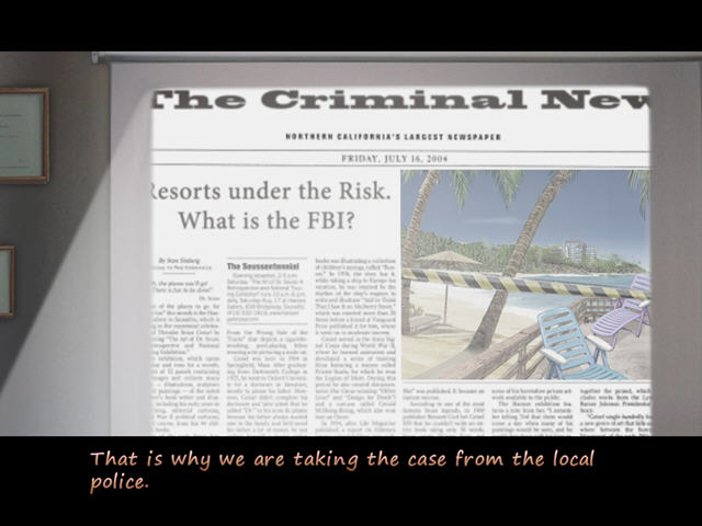 大海,阳光,天鹅绒般柔软的沙滩,夏天的空气,还有海浪的声音,但是你不能停下来享受这一切,作为联邦调查局的特工,你将进行卧底工作。在游戏中,你将作为一名美丽并充满异国情调的海滩拥有者,你的任务是去调查罪行!