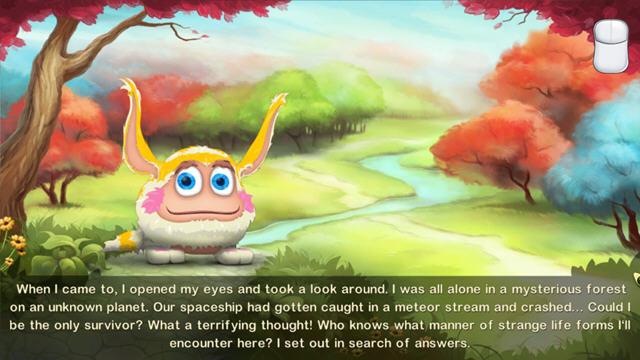 我们的主角名为斯帕克。清晨醒来发现自己在一个未知的森林,有关她的过去却一无所知,就这样,斯帕克的冒险开始了。森林里到处都是随时准备吃我们的充满饥饿的生物。所以,你必须帮助斯帕克避免悲惨的命运,喂养这些独眼怪,直到他们爆裂。