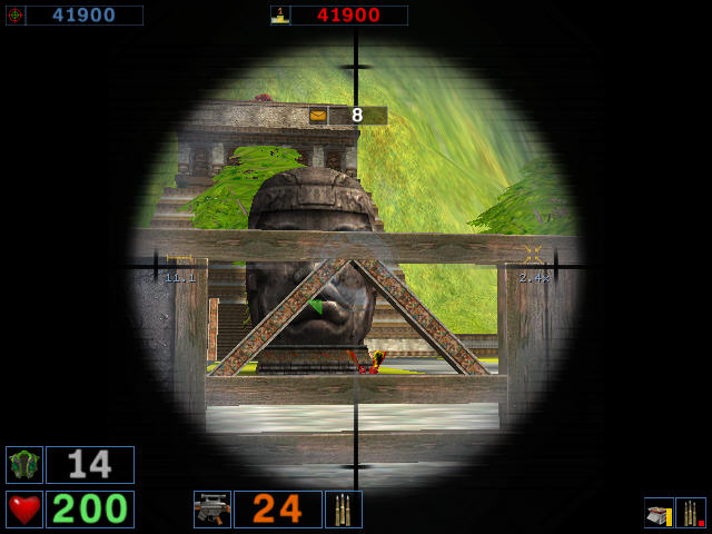 《Serious SamII》当然少不了的是暴力美学。借助全新的3D引擎,游戏画面的效果又上了一个层次。这次Sam身处于7个不同风格的世界中,在哪充满奇异动植物的行星中作时间旅行。游戏一共超过40个大大小小的关卡,时而在奇怪的未来世界城市中,时而又去火山口,时而在茂密的丛林出现,时而在阴暗的沼泽地和冰冷的苔原中。其中一个另人难忘的场景是Sam苦战巨人,巨人身边有很多身高只有一英寸高的小怪物,Sam想用那夸张的火箭炮打中它们,是否击中,这游戏《英雄萨姆2》就要看你的运气和本领了!