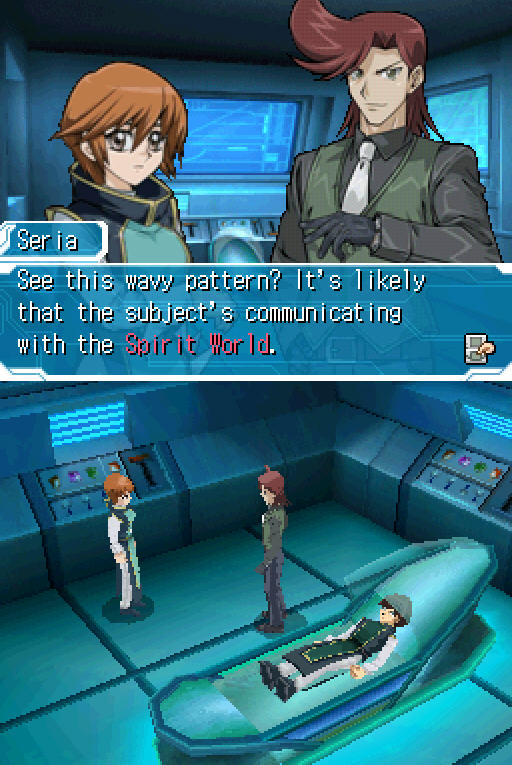 作为NDS平台上的第4款官方决斗游戏软件,这次游戏将首次在系列游戏中追加在原作中登场的企图征服世界的组织“暗黑持印者”(也被称为“黑暗印记者”组织Divine)的三名主要人物迪韦恩、鬼柳京介、和卡莉渚,而游戏的故事模式更是以被“暗黑持印者”囚禁的场景展开,主人公将会以“暗黑持印者”的成员形态开展游戏么?