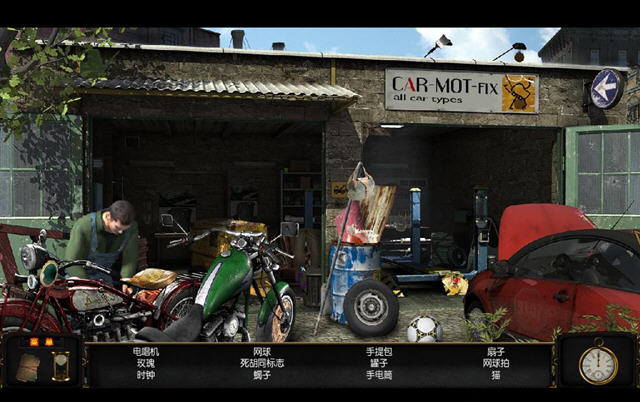 和同类游戏玩法类似,按照英文词条中显示的名称找出相应物品即可,包括蓄时的提示功能可以使用。