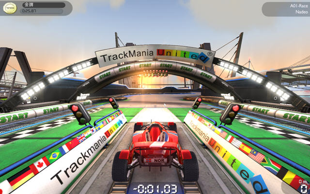甚至而且此游戏还支持红蓝3D立体眼镜,在网上花几块钱就可以买到这种眼镜.游戏的联网部分是其重点。但千万不要以为它是收费的。玩家连接互联网,不仅是免费的,而且十分简单,甚至连注册都没有繁琐的过程,只需输入一个没有被占用的用户名和密码,系统就会自动帮你注册。玩家登录之后,可以自己创建游戏服务器,也可以进入其他玩家创建的服务器进行游戏。Nadeo为全世界的玩家准备了一个排行榜。玩家在互联网游戏获得胜利之后便可以获得积分,之后便可以随时查看自己的积分和排名。当然,“国家”二字很显然地告诉了我们还有一个国家排行榜。玩家获得的积分会自动加入到玩家所属的国家的积分中去,当然也可以随时查看各个国家的排名。事实上,玩家启动游戏时如果已经连上网的话,首先看到的就是国家排行榜。