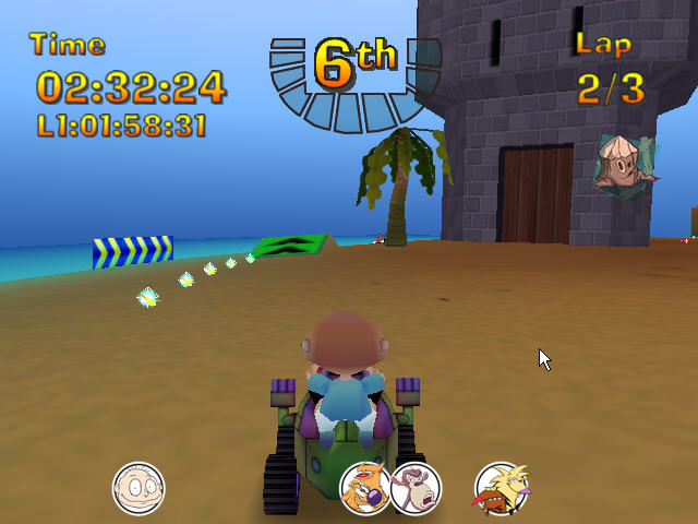 PS: 这是2000年出的游戏,其中竟然具备《跑跑卡丁车》相当一部分的元素,例如扔道具等!
