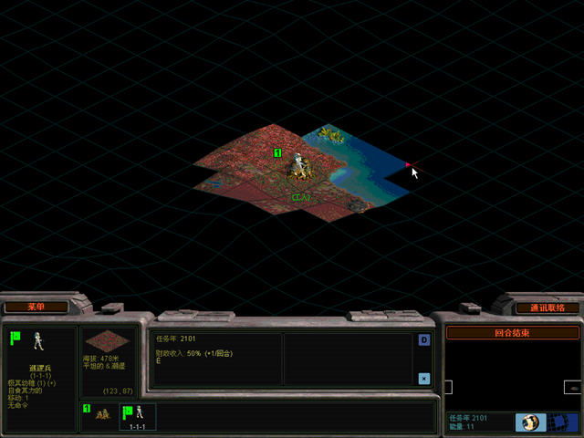 资源丰富的地区会在地图上标出,沃土对应一颗菜,矿山对应的是一堆蓝矿石,能源对应桔色气团。基本资源的采集只能在城市管辖区域展开。点击城市,可进入城市控制窗口。在城市工作状态区中,正中是城市中心,周围20格隶属于城市管辖范围。城市中心无需工人,可以自动生产。在其余地区工作需要工人,每块土地上只能有一名工人。工人的数量与城市等级、城市人口有关,在游戏初期,工人数量=市民数量=城市等级。画面中的绿苹果代表食物,蓝宝石代表矿物,桔色火焰代表能源。将城区中所有的绿苹果/蓝宝石/桔色火焰上的数字分别相加,就是你食物/矿物/能源的每回合产量。