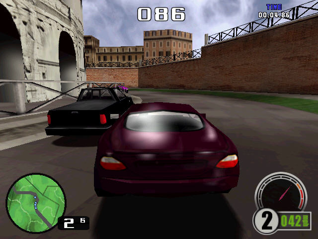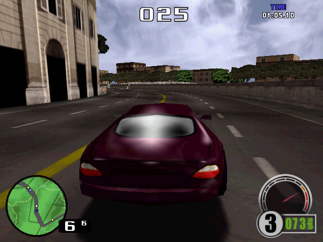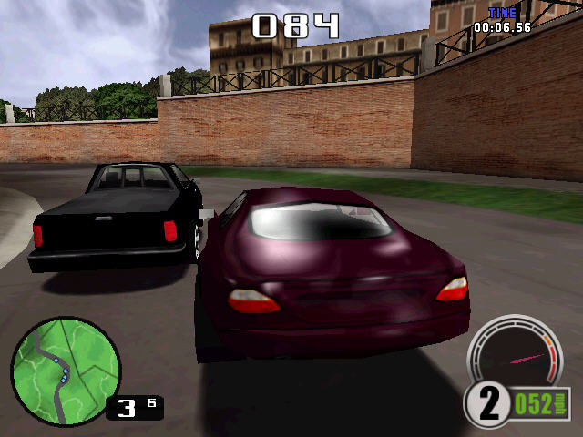 与以往的赛车游戏不同的是,《疯狂大车拼6》(Test Drive 6 )的剧情特别独特,游戏的主角是一个打入黑帮的特工,而他在黑帮的职务就是黑帮老大的司机,所以免不了在大街上与警车打交道。在很多诸如保护帮主、帮助黑帮飚车等任务中,不但要和对手在车水马龙的街道上竞赛,还要摆脱后面警车的追击。一旦被警车追上了,靠边停车是必然的,这样就会被对手甩开一大段路。游戏中除了提供正常的训练、竞赛等模式外,游戏还专门提供了一个在城市中飚车的模式,在这个模式中,撞车、超速、违章都会被巡逻的警车追击,如果你溜的比较快的话,有时还会调集其他的街区的警车来增援。