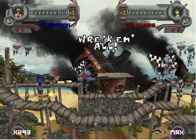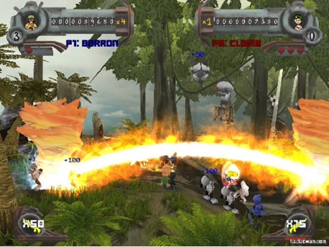 一款街机风格的卡通射击游戏。