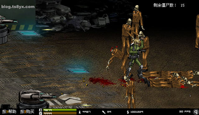 操作方法:WASD控制人物的移动,J攻击,K换子弹,B打开购买武器界面,H打开帮助界面。