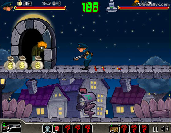本版本为 警察大战僵尸中文版无敌版,被打也会掉血,但是基本上可以无限金钱,金钱修改50000,可以购买所有的武器。