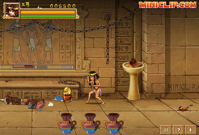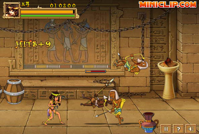 埃及公主的父亲被地狱魔王抓走了,公主需要深入地狱,通过重重关卡,打败邪恶的敌人以及各个关卡的邪恶首领,救出自己父亲