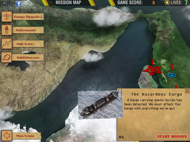 如何开始:点击NEW GAME,点击地图上导弹图标,再点击右下角的START MISSION开始游戏。点击SKIP跳过说明。过关后可购买武器装备。