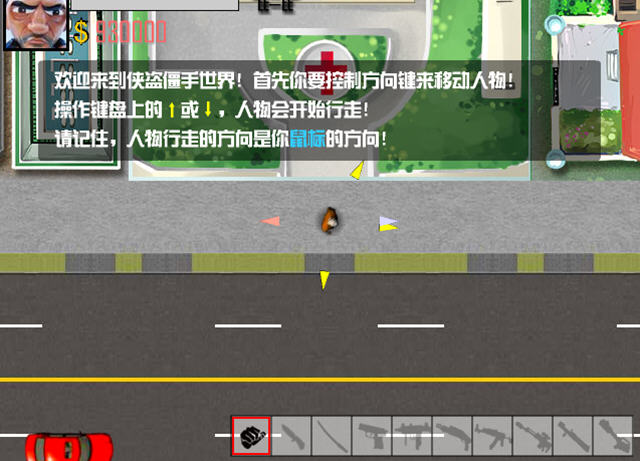 这是一款GTA/侠盗飞车的FLASH版,画面角度像是PSP和NDS上的血战唐人街,操作的话更像是生化危机。
