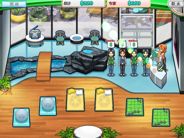 《莎莉的养生工坊》是一款非常不错的模拟经营类游戏.这款游戏就好比现实中开店子一样.为客人服务,刚开始一个人忙不过来,等慢慢的赚到钱,雇请一个服务员然后帮着你快速的经营.还刻意雇请教练.买设备等等!!