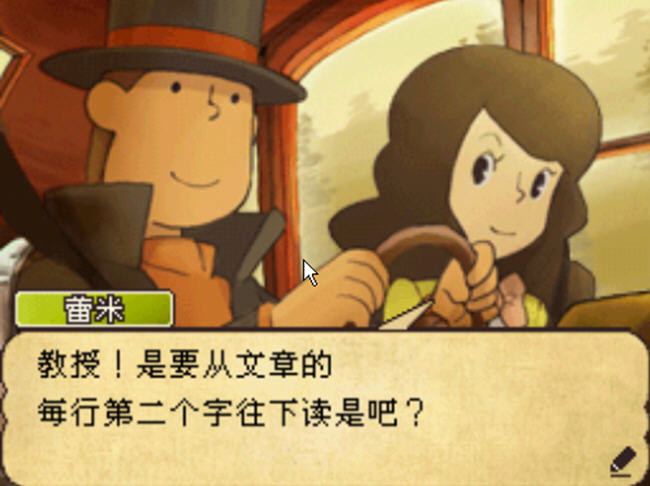 该方式算是个针对『雷顿教授』系列加以改编而成的角色伴演游戏。本次一样是继续游戏中相关故事和人物介绍,其中也有新的小游戏登场。
