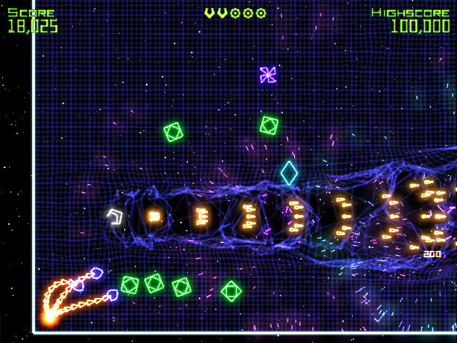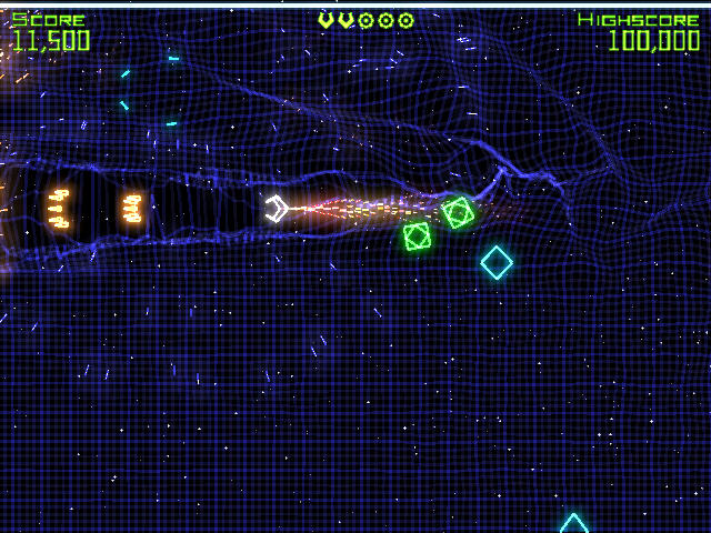 《几何战争》是一款非常个性非常绚的射击类游戏.这款游戏和其它游戏操作不一样,在这款游戏里操作是用WSAD分别控制上下左右.而用↑↓←→控制子弹发射.是不是觉得很特别呢,还有更多精彩等着你来体验!