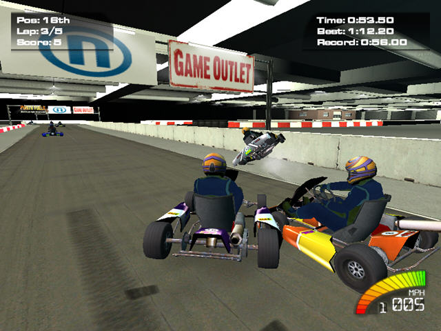 卡丁车手:本作是款以卡丁车为主题的赛车竞速类游戏。游戏提供了60cc,125cc,250cc三个竞赛组别,来自7个国家的15条赛道,包括室内和室外两种环境,每场比赛有16部赛车参与角逐。游戏的单人模式提供普通竞速、竞技场、挑战等多个规则,多人模式支持双人同乐。如果车体间发生了碰撞会导致车体变形,回放系统能提供比赛的全方位角度欣赏,比赛获胜后可解锁新的车辆、赛道和竞技场模式。