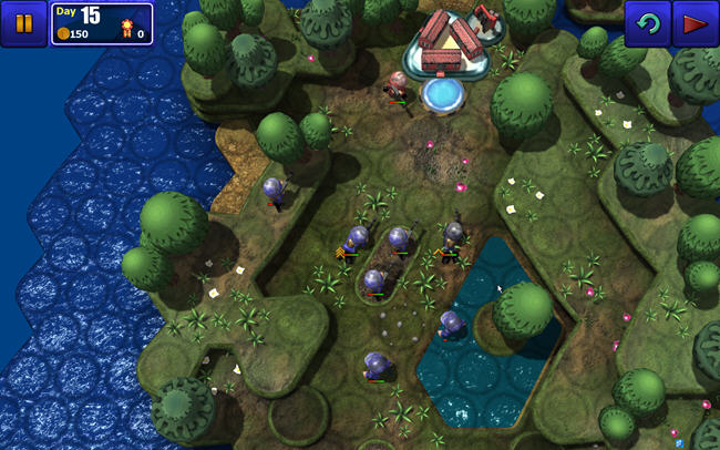 操作方面,是回合制的形式,以触屏为操作方式,整体的操作简单易懂,也相当的顺畅。游戏将可以有生产战斗单位的基地,不同的战斗单位会需要不同的生产花费,但并不是越贵就意味着越强大。生产用的费用是需要占领资源建筑后,才能获得的。占领的资源建筑越多,每个回合能得到的生产资源就会越多,也就意味着能生产更多的战斗单位。