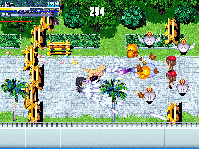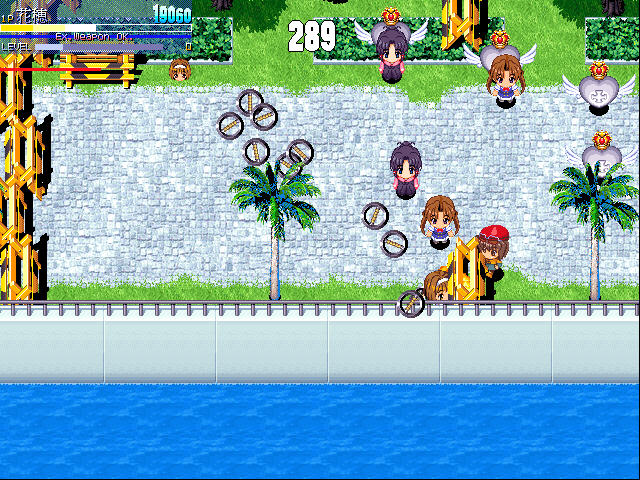 前方产生大量十字架 敌人碰到十字架即受到伤害 当敌人被击倒时 已被击倒的敌人为中心 连爆弹向四处飞散
