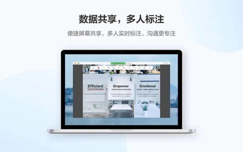 支持屏幕共享、白板共享、投屏共享等多种数据分享方式