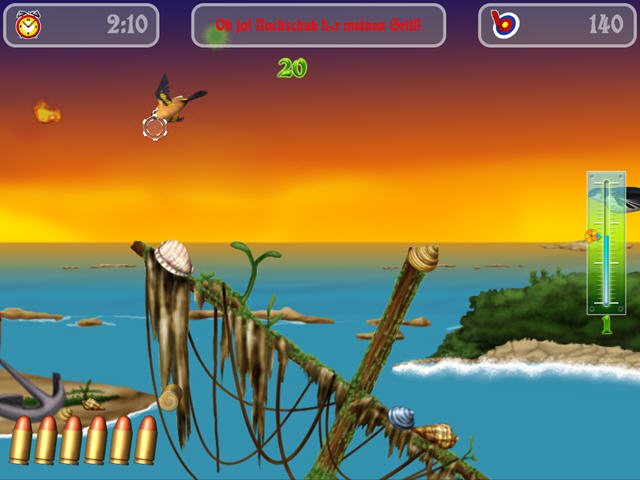 《飞鸟射击2》是一款非常有意思的射击类游戏.游戏的画面非常的新鲜,而且和其它的'打鸟'游戏相比我觉得这款画面是最好的呢!特别是在海边很有意境的感觉....不过还有其它场景,大家亲自体验就知道它的特别之处哦!