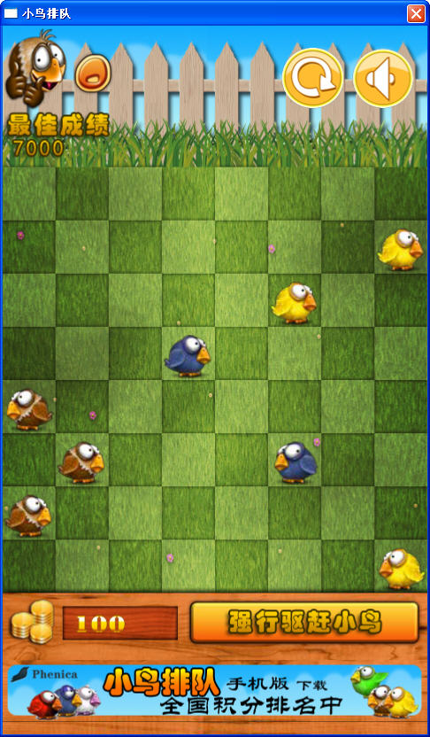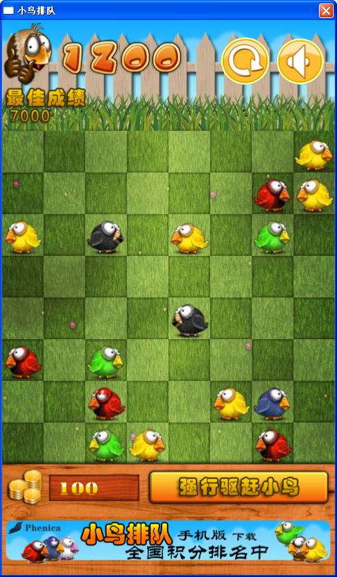《小鸟排队》是一款由热门手机游戏改编过来的消除类游戏,只要把4只相同的小鸟连成一条直线即可。