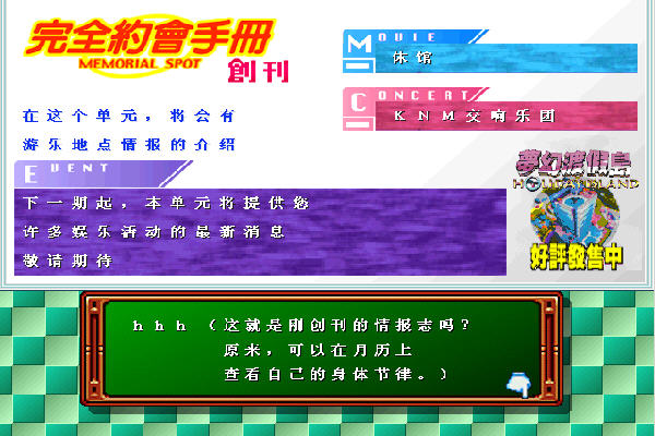 《心跳回忆》(Tokimeki Memorial)俗称Tokimeki或Tokimemo,也有人将之译名为《心跳的回忆》,它可以说是日本“恋爱游戏”的始祖。早在NEC的PC-Engine电视游乐器推出前数年,不过让《心跳回忆》真正扬名立万的,应属1994年移植为PC-Engine光碟版游戏之后,它是PC-Engine历来游戏软体总销售量的第二名。1995年10月,《心跳回忆》的Sony Play Station电视游乐器版上市,立即便成为PS游戏销售排行榜冠军,也正式开创了“恋爱模拟游戏”的黄金时代。