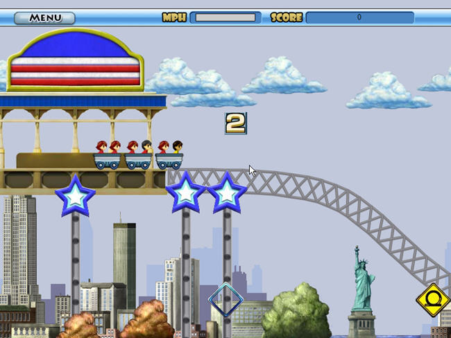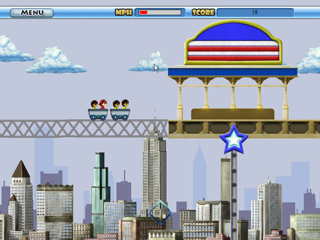 带着你的乘客翻腾吧,让他们为惊险刺激而尖叫吧!用速度增加乘客的兴奋度,增加你的得分。千万注意,即使一点点小小的跳跃也可能让你的过山车掉下去。