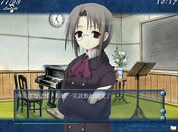 游戏中,玩家将扮演主角库里斯,从留宿公寓里开始极新的一天,梳洗之后他会到琵欧伯音乐学院上学。只要完成了早上圆丁的传授课程,下战书之后就可以在学院里自由走动,除了能到训练室训练钢琴的弹奏本领之外,还能随意到处走动,藉机探求合唱的搭档人选。