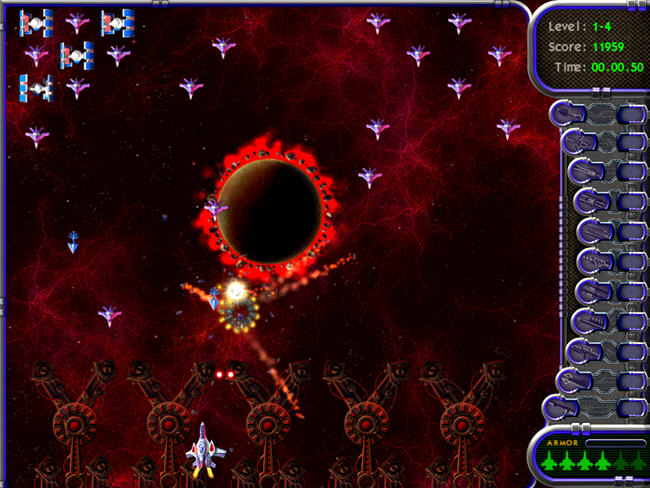 一个抵抗异星侵略者的射击游戏,你要操纵宇宙飞船击败外星生物。