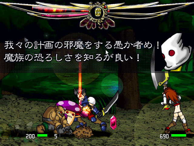让你体验街机的刺激。很爽快的过关格斗游戏,可拖一名NPC与你一起打,打敌人掉落宝石可以增加能量,还会掉落许多辅助道具