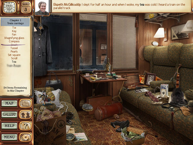 艾丝贝夫人搭乘下午四时五十分的快车,前往梅契斯特探望老朋友。途中,在与一班列车交汇时,艾丝贝由窗口惊见那辆列车上一名女子遭人勒毙。但是因为没有证据而没人相信她,除了她的好朋友业余侦探玛波小姐。在游戏中,你需要通过调查来获得真相!