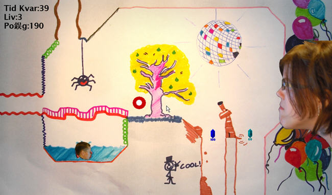 采用了来访的朋友们提供的图形、声音和照片制作的简单动作游戏