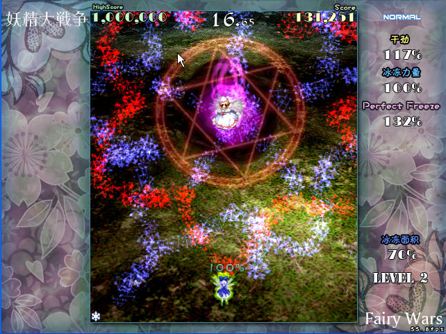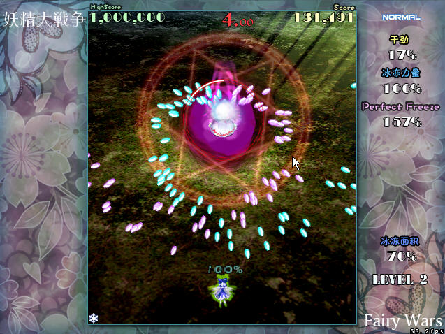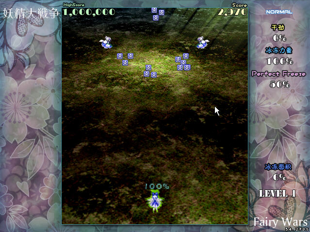 操作琪露诺击破三妖精(桑妮·米克尔、露娜·琪尔德、斯塔·莎菲雅)。琪露诺能将敌弹冻结。有效使用这一能力成为名副其实的最强妖精吧!