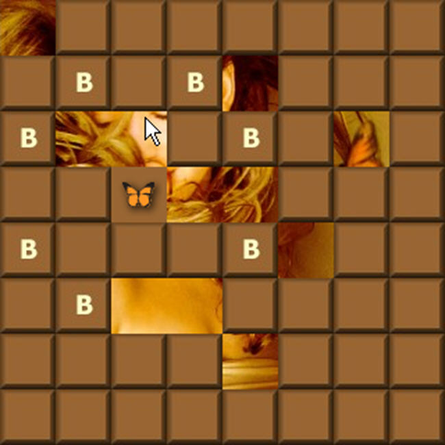 运用你的智慧去解出被方块所遮住的人物吧。当你点击某处,就会以那里为中心在周围出现8个字母,字母是可以点击并显示图像的,但是当字母被已有的图像遮住时,则不会出现,当字母全部被已有的图片遮住时,则游戏结束