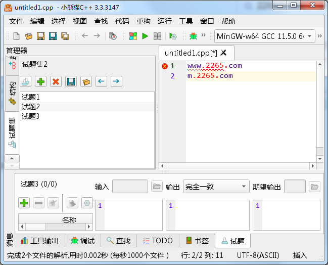 8、针对C/C++教学和竞赛需求,小熊猫C++专门提供了试题集和OJ功能:可以方便的组织管理、运行和测试C/C++练习程序;可以导入或者从OJ网站下载试题和配套的测试数据。
