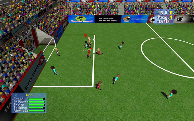SFG足球是Stir Fry Games在2010年发布的一款五人足球游戏,游戏的画面非常卡通,但是操作手感确非常不错,支持双人对战,喜欢的朋友们可以试试。